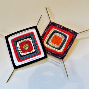 As in the photo from a town in Mexico below, feel free to attach a ribbon or a paper banner from the top with your Ojo de Dios that says your first name (if you want to be able to pick it up in August after the display is over, you can put contact information). We will have a box to start collecting these when we are open again in April. Make one or many.