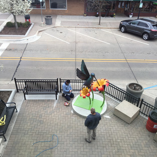 With the help of the South Haven Department of Public Works, Lou and friends installed "A Moment of Joy" in front of Clem's on a cold day, with birds chirping and a hint of spring in the air.